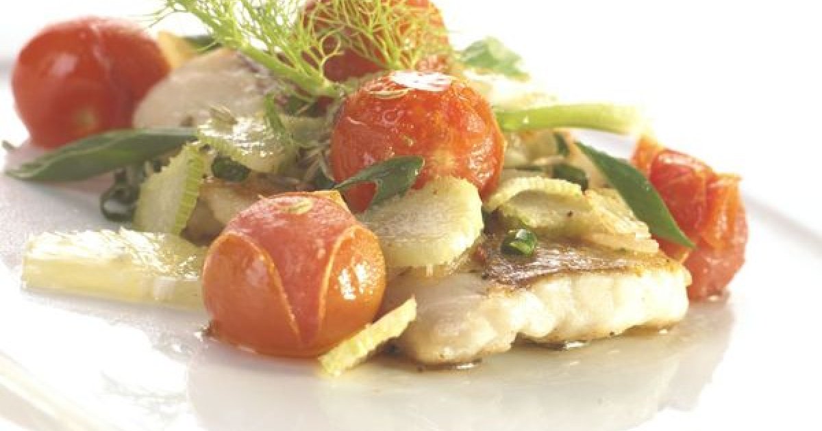 Schelvishaasje met sabayon van rode paprika